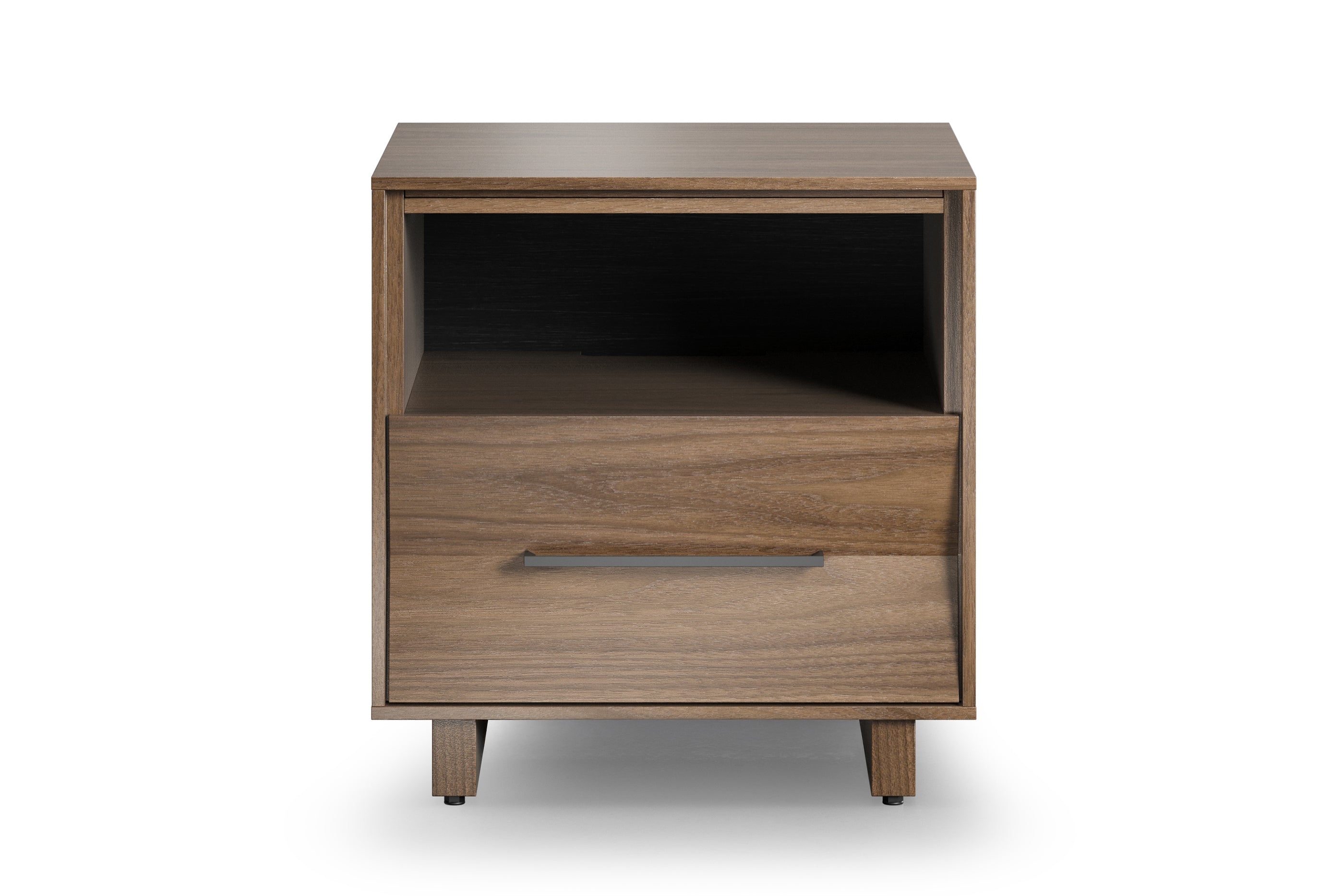 The Kava 20" Nightstand is designed with both elegance and practicality in mind. Its sliding top panel extends for extra surface space, while convenient rear cable wraps keep cords neatly organized. An integrated power station includes AC, USB-A, and USB-C outlets, making it easy to keep devices powered at your bedside. Versatile storage begins with a spacious open shelf for books or décor, complemented by a soft-close drawer for concealed organization. Inside, a removable velvet-lined tray offers the perfect place for jewelry, glasses, or other small essentials. Also available in a larger 28" Size, the Kava Nightstand pairs beautifully with the complete Kava Kava Bedroom Collection.