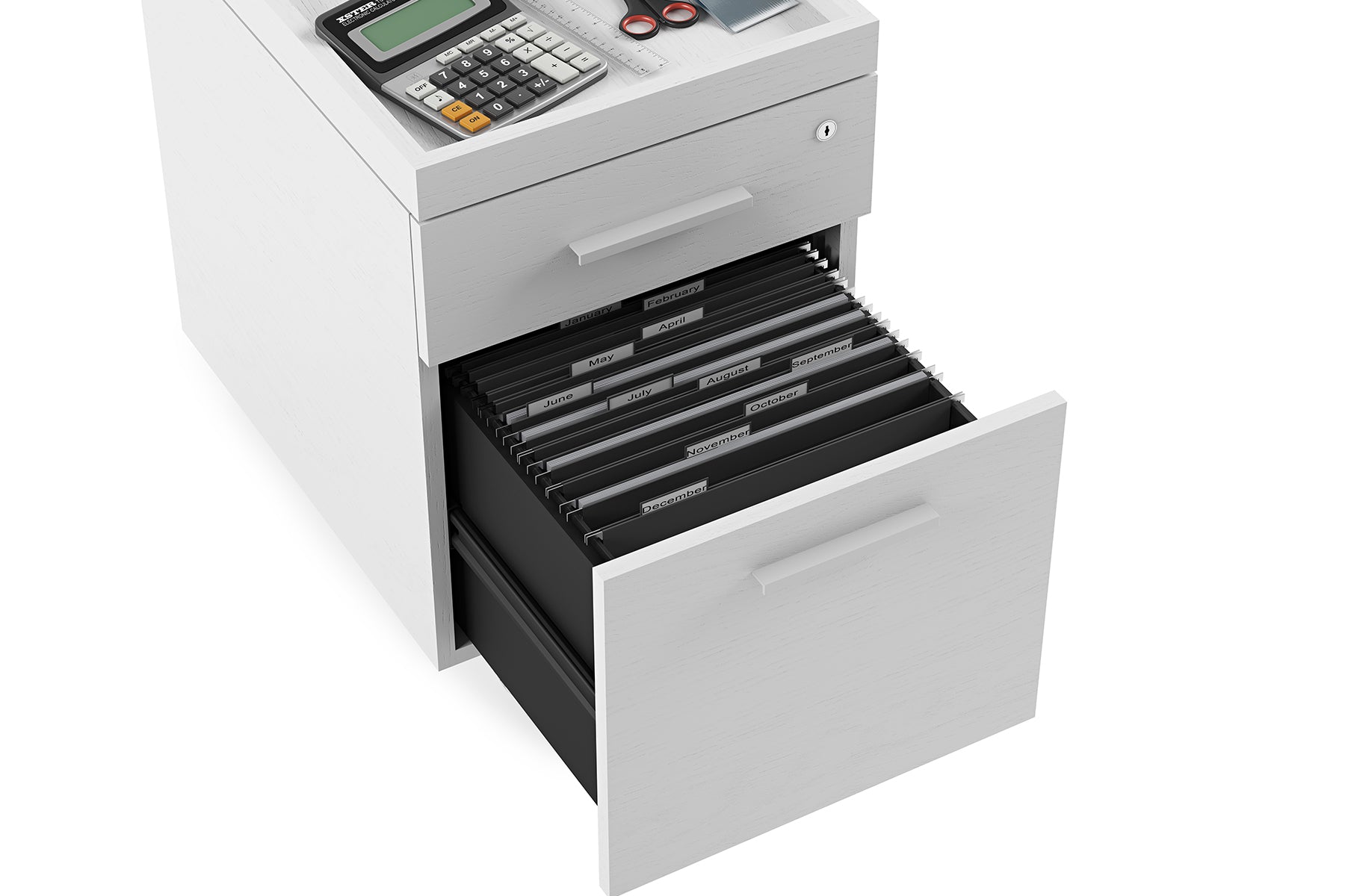 The Centro Mobile File Cabinet in satin white oak offers sleek, secure storage with a pull-out supply tray, locking drawers, and smooth-rolling wheels. Designed to fit perfectly under Centro Office desks, it includes a letter/legal file drawer and modern materials like painted hardwood veneer and powder-coated steel. A compact and functional storage solution for your Austin, TX workspace.