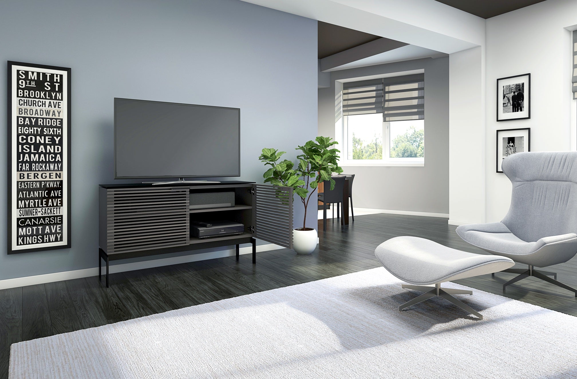 Sleek and streamlined, this slim credenza offers the perfect balance of form and function. Whether used for general storage or as a modern media console, it features a soundbar-compatible shelf, remote-friendly doors, and adjustable interior shelves for flexible organization. A satin-etched glass top adds a touch of elegance while resisting fingerprints and scratches. With flow-through ventilation, cable management channels, a TV safety strap, and soft-close doors, this piece delivers high performance in a compact footprint—ideal for stylish, space-conscious living.