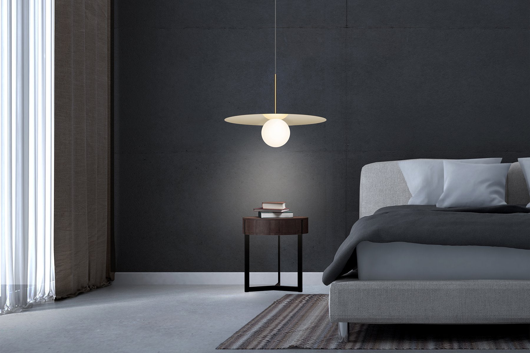 Bola Disc is a unique LED Pendant system that features an opaline glass globe diffuser and a beautiful range of chromatic disc reflectors, giving the illusion that it's weightless by mirroring its surroundings. From intimate spaces to social gatherings, Bola is designed to correspond with multiple environments. Depending on size, Bola provides up to 1550 lumens of warm ambient light and is accompanied by a full range dimming feature. Available in 4 sizes and 5 finishes.