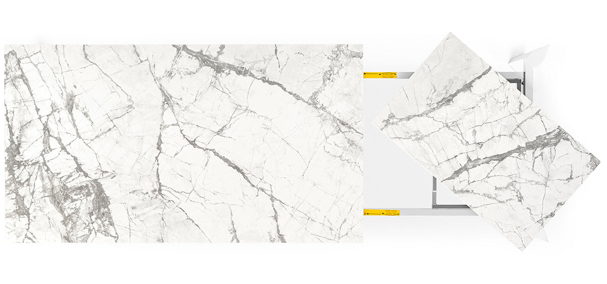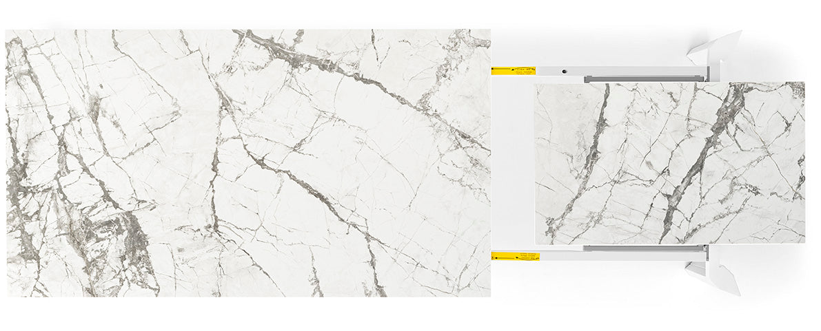 The DELTA table features slant-cut legs and a top that extends along guides. Legs always remain at the corners of the table offering maximum comfort to all guests.