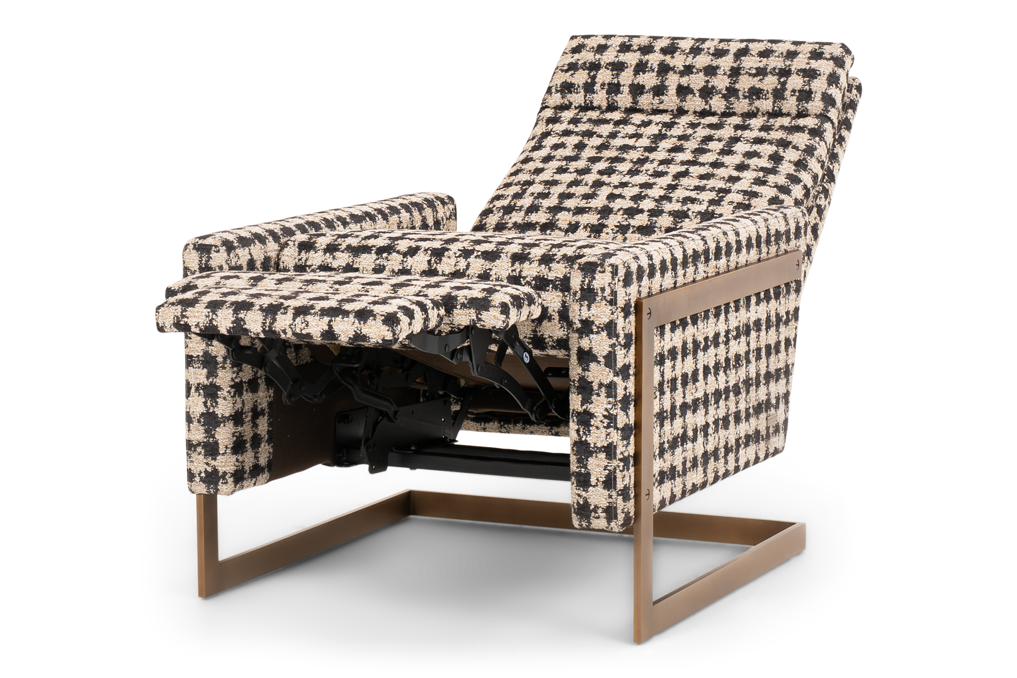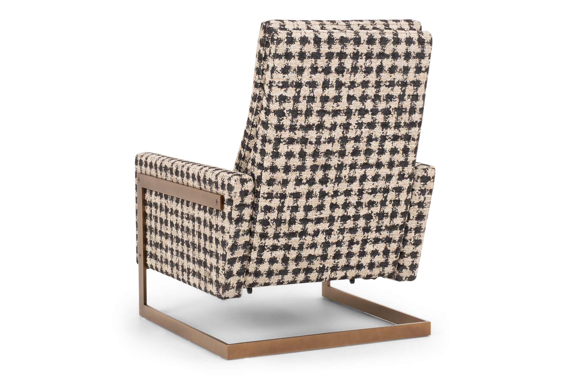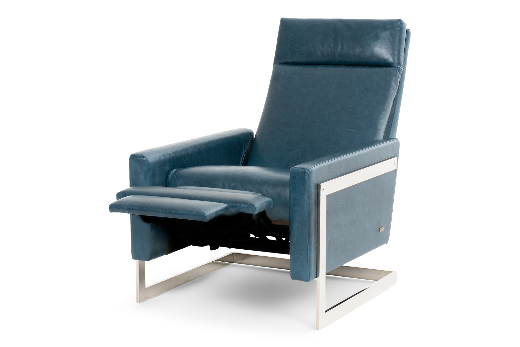 The Isla Reinvented Recliner rests effortlessly on a steel pedestal base – appearing suspended midair. Inspired by mid-century design, the clean-lined base comes in three metal finishes; brushed bronze, antique brass, and polished nickel; which contrasts perfectly with the upholstered chair. The chair is neatly tailored with a loose pillow back and a tight seat for excellent comfort. Padded to perfection, yet sleek and clean, this recliner will elevate your living space with ease. Upgrade to the power option and recline with the in-arm motorized control panel.