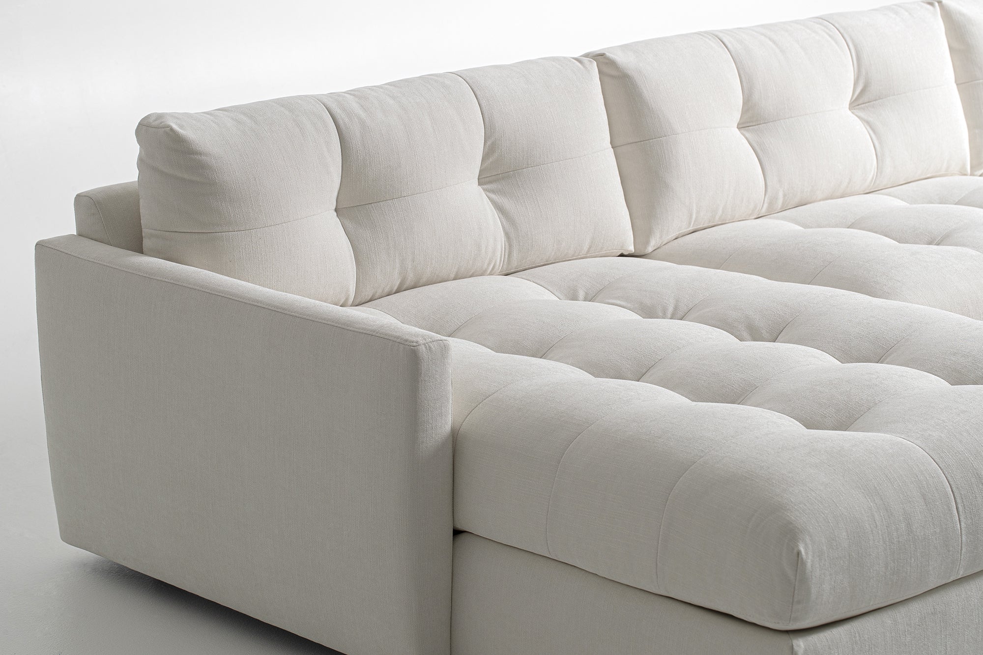 The Carmet is a low profile chair with a sleek modernist look and wide track arms that taper in from the top of the chair to the bottom. It's a plush and comfortable piece and is even available as a single swivel chair. Over 25 configurations are available for a personal aesthetic and style.