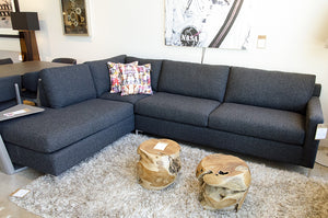 The Soho II is one of our best selling sectionals. It has a warm contemporary look with several different pieces to configure the perfect fit for any living space. The seat and back cushions are filled with a standard 1.9 density foam but upgrades for higher density foams are available. Upgrades for trillium wraps and down wraps are also available for a more densely contoured cushion.